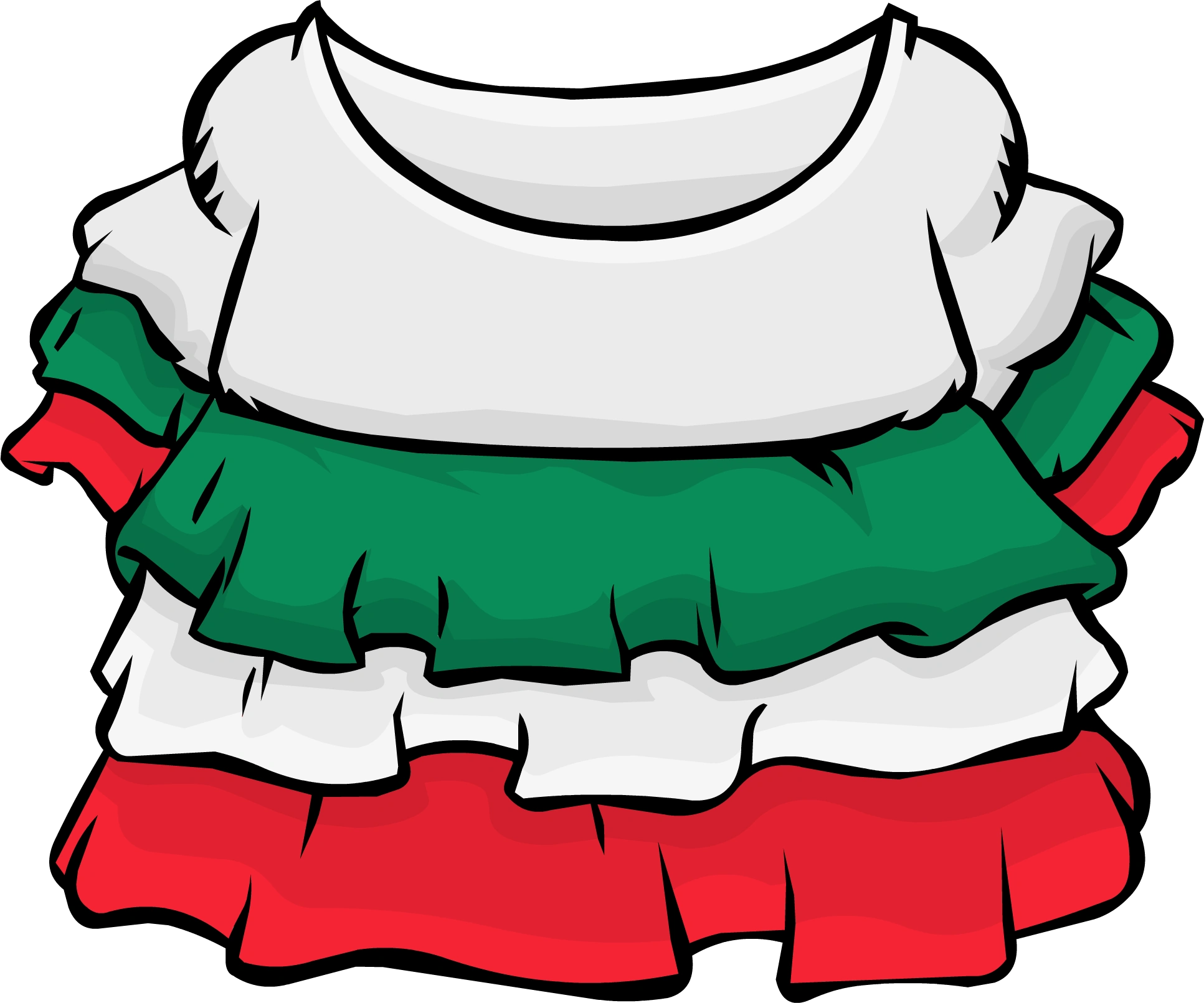 The Fiesta Dress is a body item in Club Penguin Rewritten. It costs 600 coins in the Winter Fiesta Catalog during the Winter Fiesta 2018 and in the Penguin Style catalog.