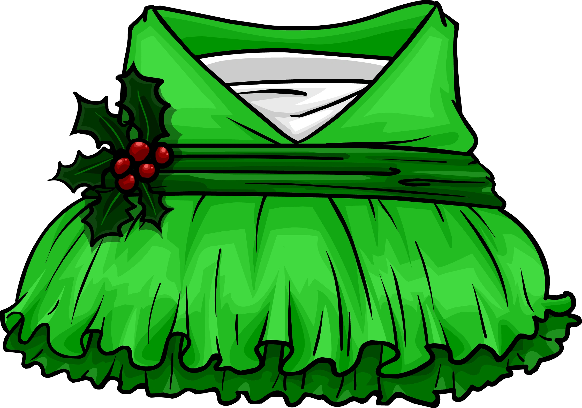 The Holly Elf Dress is a body item in Club Penguin Rewritten. It cost 475 coins in the Penguin Style catalog.