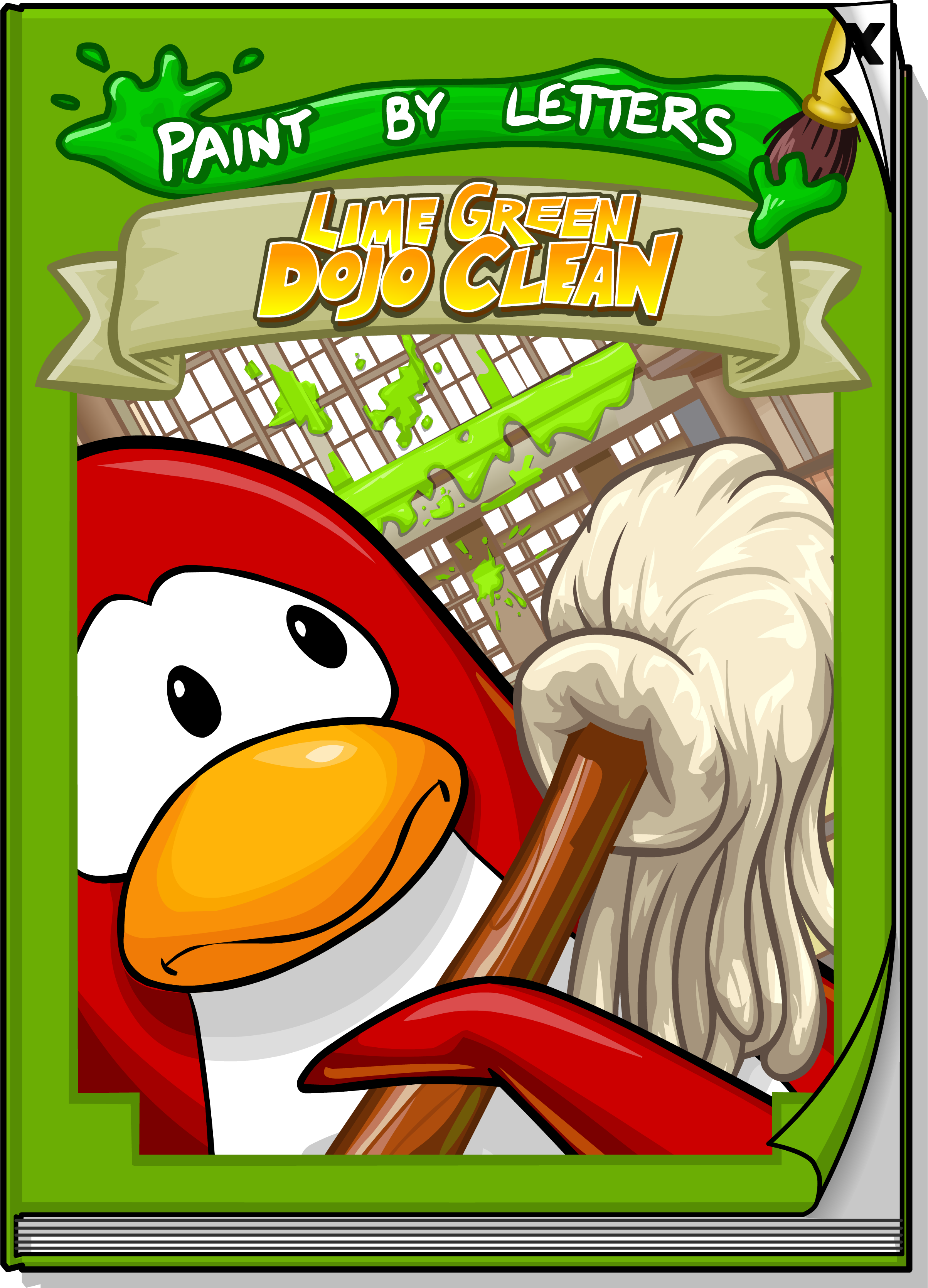 Lime Green Dojo Clean was a Paint By Letters book published by Snowball Press. This book was written in rhyme, and it was the longest in the Paint by Letters series. The base score was 160 coins, but if you found all hidden coins, you would get 800 coins.